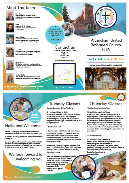 We're delighted to announce that our new Art, Faith and Wellbeing Hub will be open every Tuesday and Thursday, beginning 13th January 2026. To learn more, please click here or to read, download or print the brochure click on the picture below (opens in a new browser window or tab).